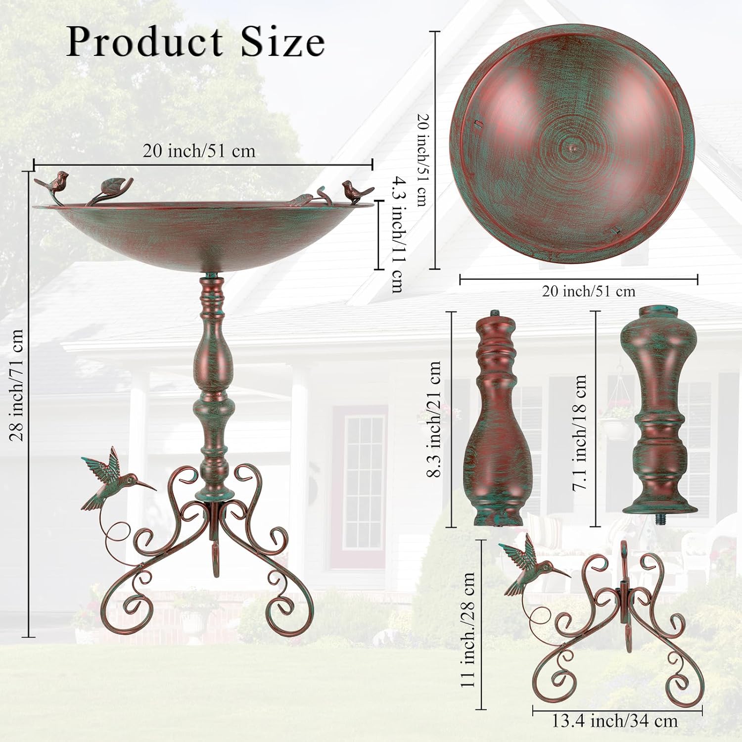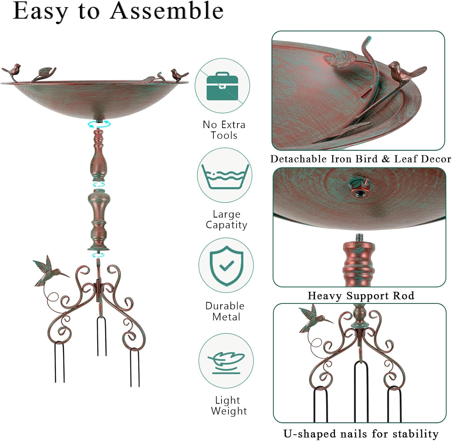 Qipade decorative metal bird baths can be used as garden, lawn and patio decoration to create a beautiful and comfortable courtyard full of vitality