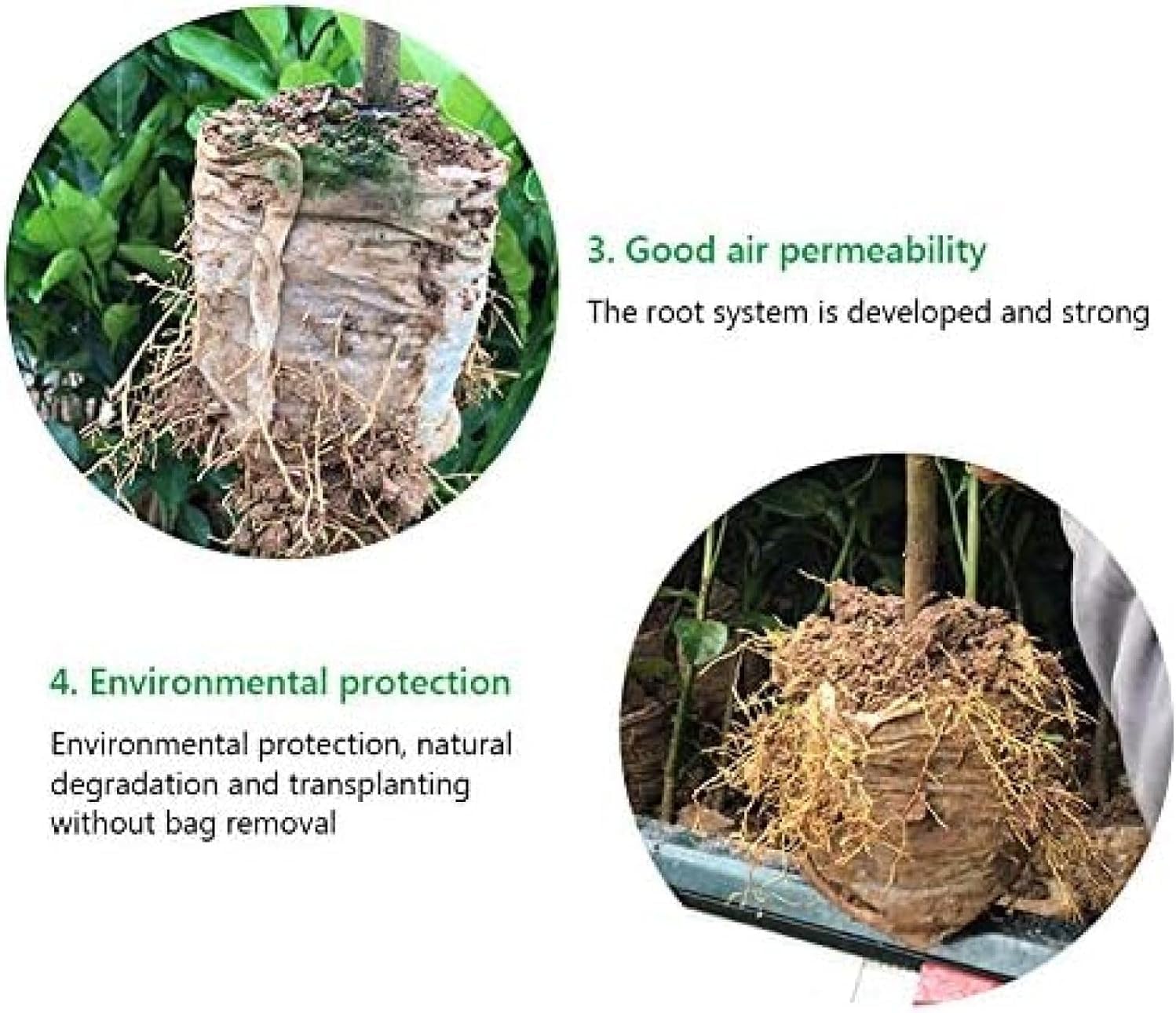 Features100% Brand new!Biodegradable non-woven nursery bags plant grow bags fabric pots plants pouch home garden supply.Eco-friendly breathable and biodegradable non-woven material, no need to remove the bag when transplanting, improving the plants survival rate.Excellent water absorption and permeability, nutrient and moisture can be absorbed easily.High survival rate, fast growth, ensure the plant grow well. Prevent the seedling from forming entangling roots and decaying roots.Multi purpose. Non-woven seedling bags can be suitable for a variety of planting needs, they are perfect for flowers, vegetables, saplings, covering your garden.You can choose the size that suits your plant growth according to your needs.SpecificationsMaterial: Non-WovenColor: WhiteAttentionsPlease allow tiny size deviations due to human measurement.Due to the effect of light and monitor's brightness, there may be slight differencesbetween the color tone of the photo and the actual item.Package Included100 x Plant Grow Bags