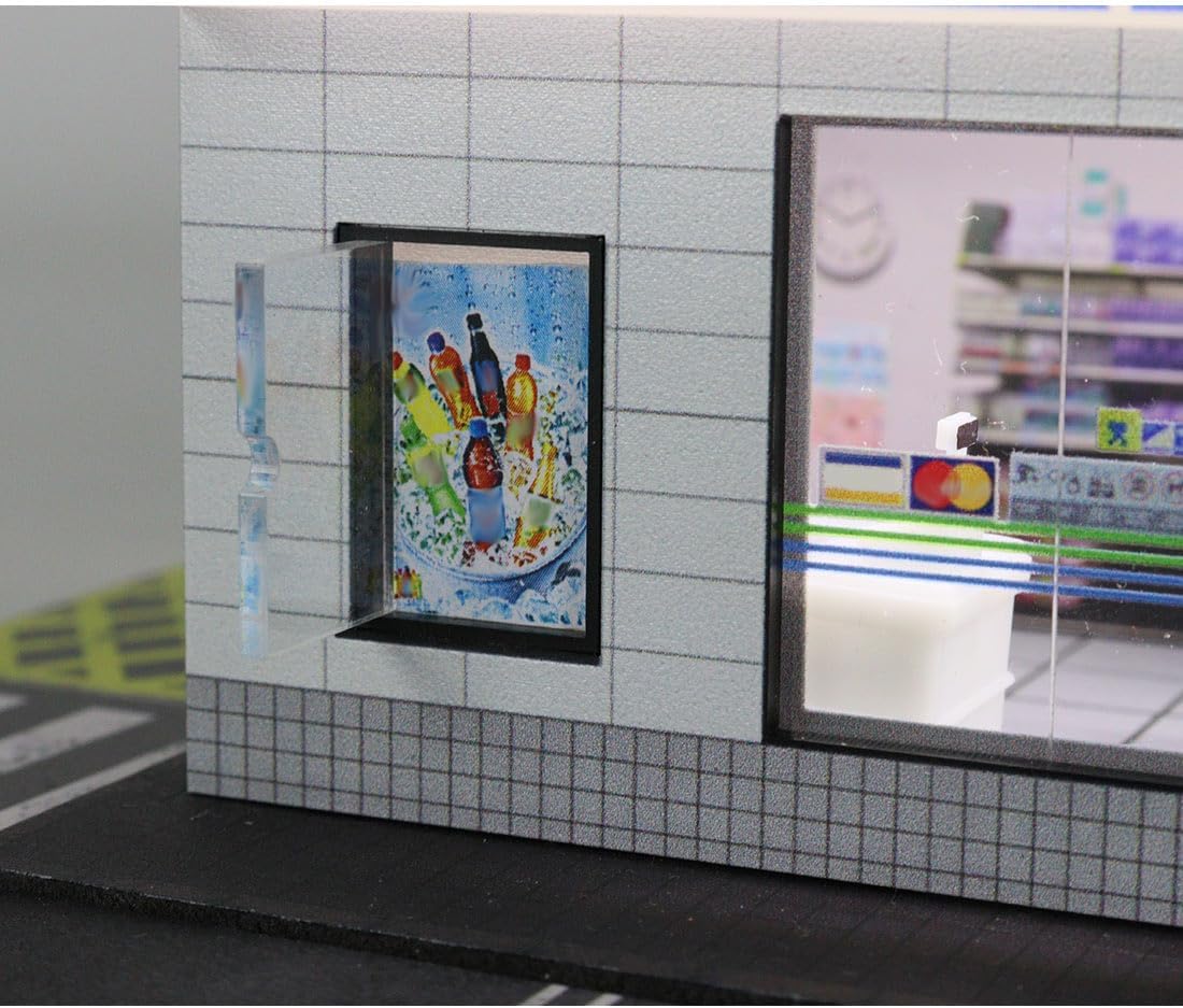 Specifications:. Name: 1/64 Convenience Store Architectural Scene Model. Material: PVC, Acrylic. Power Supply: USB Plug. Product Weight: 500g. Package Weight: 800g. Product Dimensions: 28.5 x 30 x 6.5cm. Package Dimensions: 30 x 30 x 5cm. Packing: Box. Age: 15+Package Including:Model x 1 set