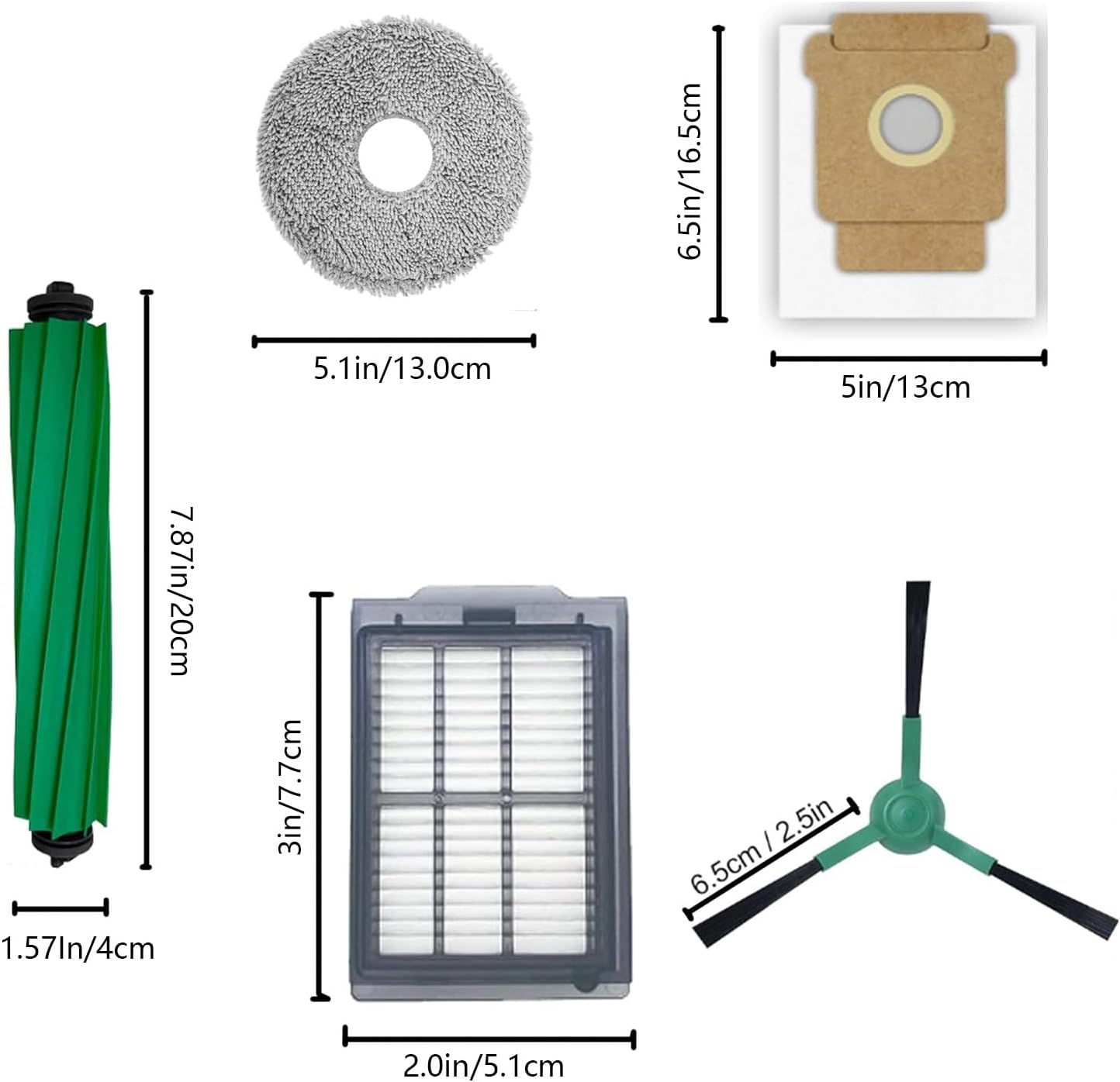 | Included Components | 2Main Brush, 4Hepa Filter, 6 Dust Bags, 6 Mop Clothes, 6 Side Brush |