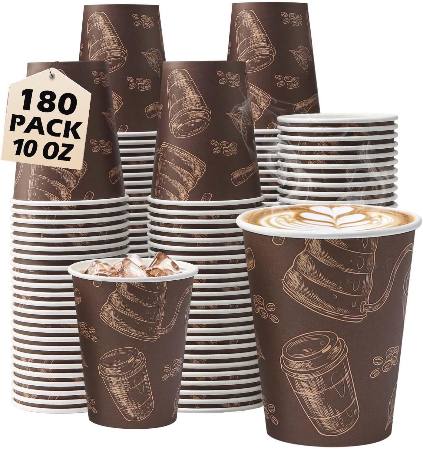 • Value Pack: Each coffee paper cups set comes with 180 pack bulk coffee cups. From formal events to casual get-togethers, our cups fit seamlessly, promising functionality without compromising on style or comfort