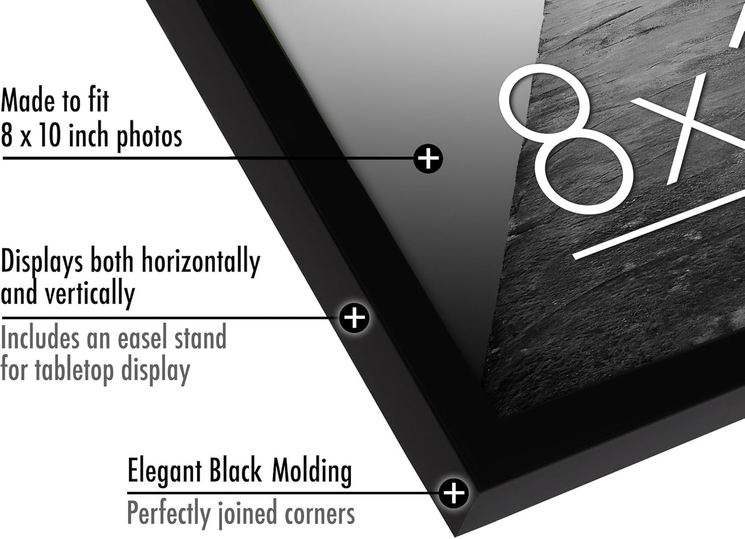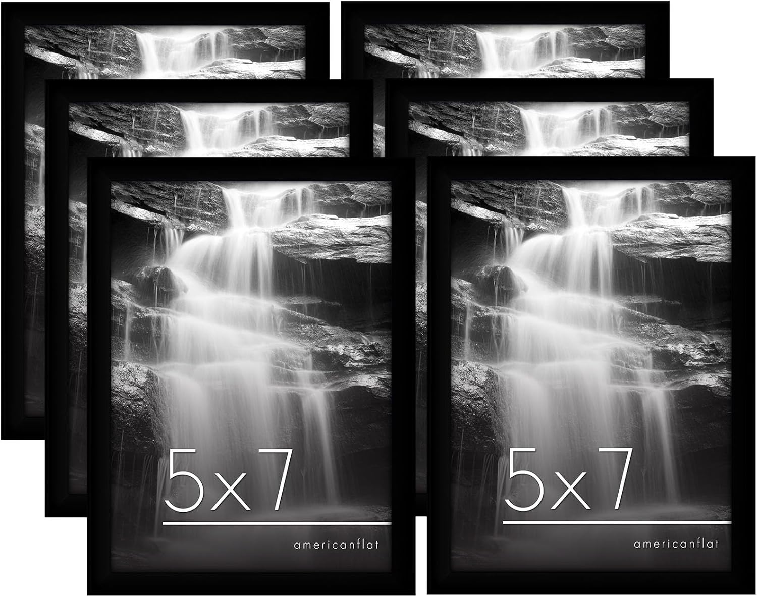 Give your memories the frame they deserve with our Americanflat 8x10 picture frame, available as a set of 6. Crafted from durable material (PVC) with sleek, slim molding, these are more than just picture frames; they're a game-changer for your decor. The shatter-resistant glass front offers a crystal-clear view while protecting your photos, posters, or artwork from dust and scratches. Because your favorite moments deserve nothing less than perfection. Versatility meets style with our collage picture frames. Hang it vertically or horizontally using the included hanging hardware, or use the easel stand for a tabletop display. It's an ideal way to showcase your cherished photos anywhere in your home or office. No matter how you style it, the black finish adds a timeless touch, instantly elevating your space. Refreshing your display has never been easier. The easy-to-use turn points make swapping photos a breeze, so you can update your walls as often as you like. Plus, the sturdy backboard keeps everything securely in place, ensuring your memories always look their best. Why settle for boring walls when you can have a gallery at home? These photo frames are built to last, combining style and functionality to create keepsakes you’ll treasure forever. Order yours today and join thousands of satisfied customers who’ve transformed their spaces with Americanflat.
