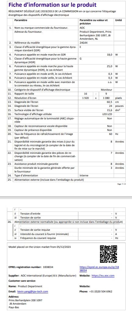 AOC 24G4X écran plat de PC 60.5 cm (23.8") 1920 x 1080 pixels Full HD LCD Noir