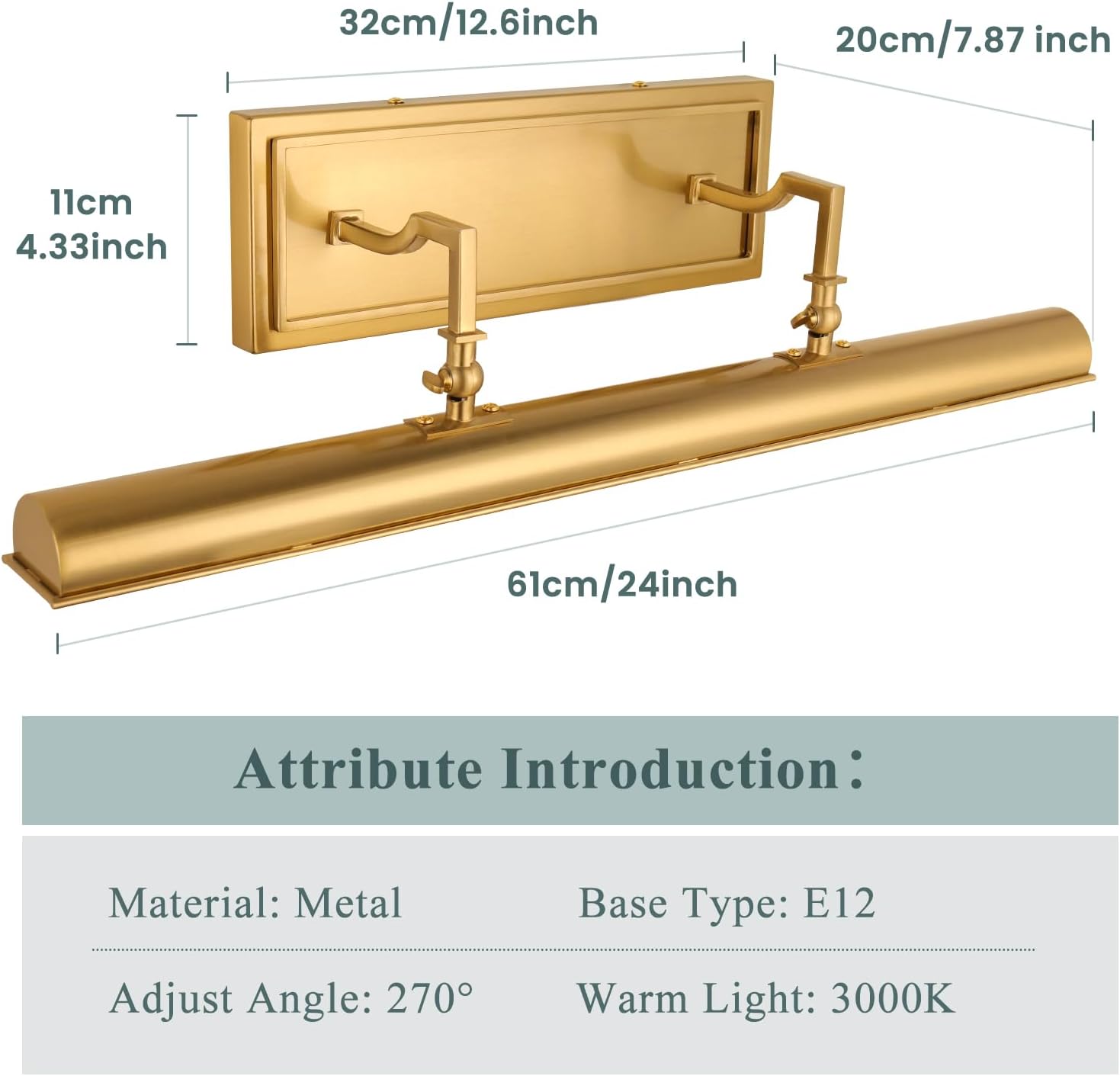 【270° Adjustable Angle Picture Light】Gold wall light is adjustable up and down with rotatable arms, the maximum angle can be up to 270° and tilted towards the painting, providing the right amount of light for your precious artwork.