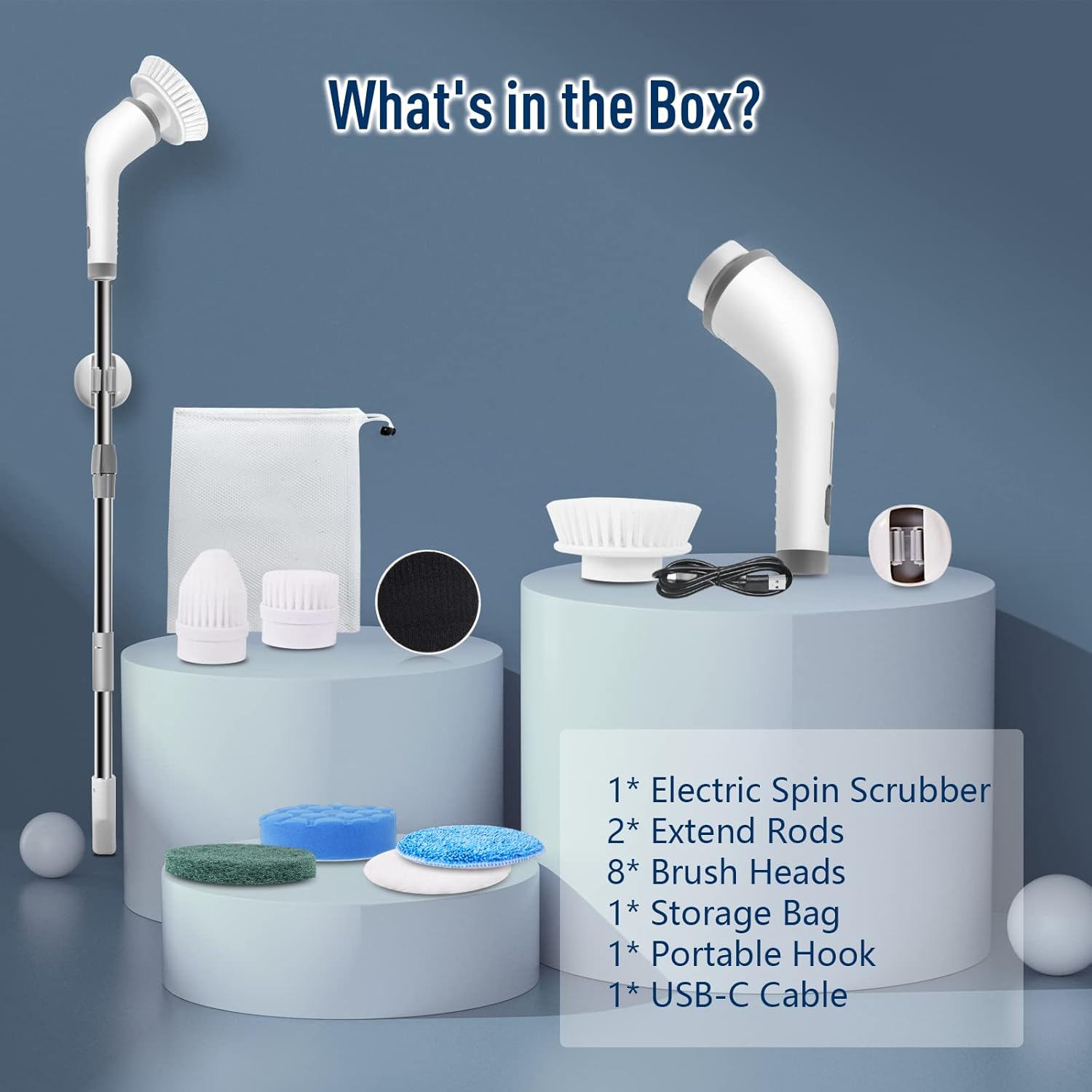 Included Components 1* Electric Spin Scrubber; 8* Brush Heads; 1* Hook;1* USB-C Charging Cable; 1*Storage Bag.