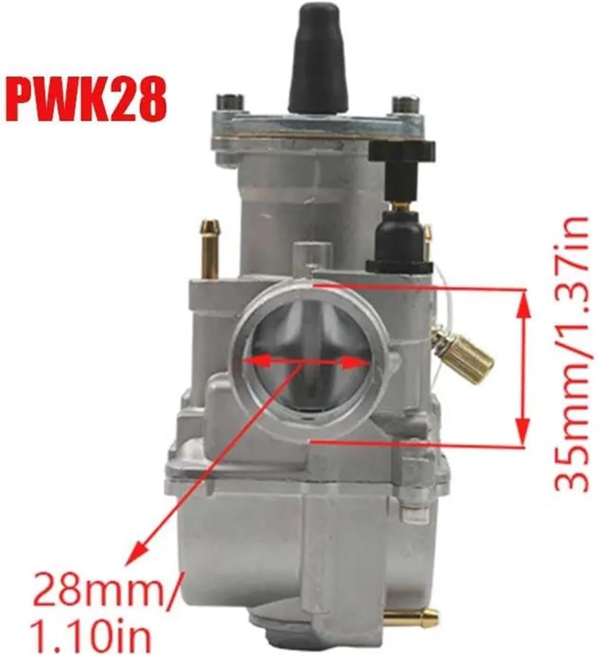 Motorcycle Carburetor Universal For PWK 26 28 mm Carburetor Power Injection Carburetor.Applicable to:Universal For PWK 26 28 mm Carburetor Power Injection Carburetor.Description:Type: Carburetor Material:Aluminum alloy26mm Fit On 110cc To 138cc Engine28mm Fit On 125cc To 160cc EnginePackage Includes:1 x Carburetor.Features:This carburetor is made of aluminum alloy material, which is and sturdy. It is not easily damaged, and long service life.carburetor uses a unique oil delivery system design, which can provide precise oil volume control and oil supply, ensuring the fuel economy and reliability of the motorcycle during driving.Carburetor ensures a correct mixing of gas and air to meet the specific operating conditions of your engine, improving efficiency .This carburetor can mix a certain amount of gasoline with air, automatically proportion the corresponding concentration according to the different working conditions of the engine, and output the corresponding amount of mixed gas.This carburetor Provide intake and exhaust , thus saving energy and fuel. Experience a stronger and more powerful driving feeling, while enjoying smooth and efficient driving.