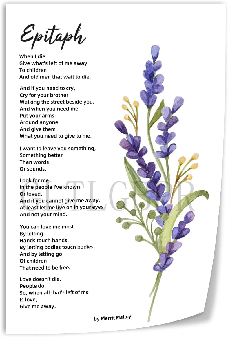 GLTLGBPR Poem on Death by Merrit Malloy - Epitaph Poem Wall Art Canvas Printing Office Bedroom Aesthetic Poster 12x18inch(30x45cm) Frame-style-1