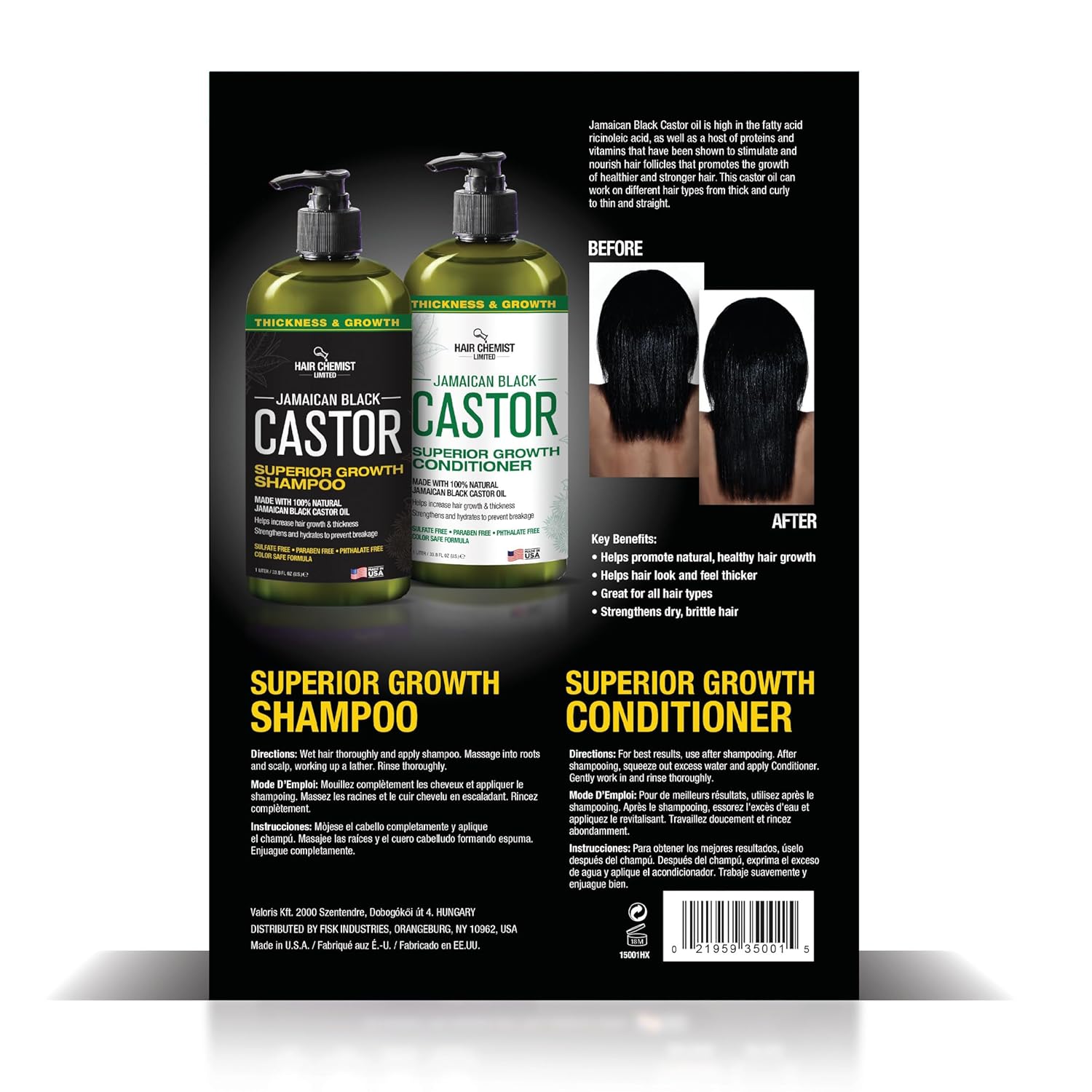 TWO (2) PIECE JAMAICAN BLACK CASTOR SHAMPOO & CONDITIONER GIFT BOX: Includes both our Hair Chemist Superior Growth Strengthen Shampoo and our natural hair Conditioner in large 33.8 ounce bottles in a Giftable Box. Hair Chemist Jamaican Black Castor Shampoo & Conditioner are the ideal hair care collection among those looking to nourish and strengthen their hair. NATURAL HAIR CARE REGIMEN: This expertly formulated shampoo is made with Jamaican black castor oil, which is known for its ability to promote hair growth, while the conditioner is formulated to deeply moisturize and detangle hair. BLACK CASTOR JAMAICAN SHAMPOO: The set is ideal for those with natural hair, chemically-treated hair, or hair that is prone to breakage, as it helps to strengthen and protect the hair from damage. CASTOR OIL FOR HAIR SHAMPOO: With regular use, the Jamaican Black Castor Shampoo & Conditioner set can help to improve the overall health and appearance of hair, leaving it looking shiny, strong, and full of life. GIFT BOX INCLUDES TWO (2) 33.8 Ounce Bottles (One of Each)- Sulfate Free - Paraben Free - Phthalate Free - Easy Hair Chemist Packaging - Made in USA