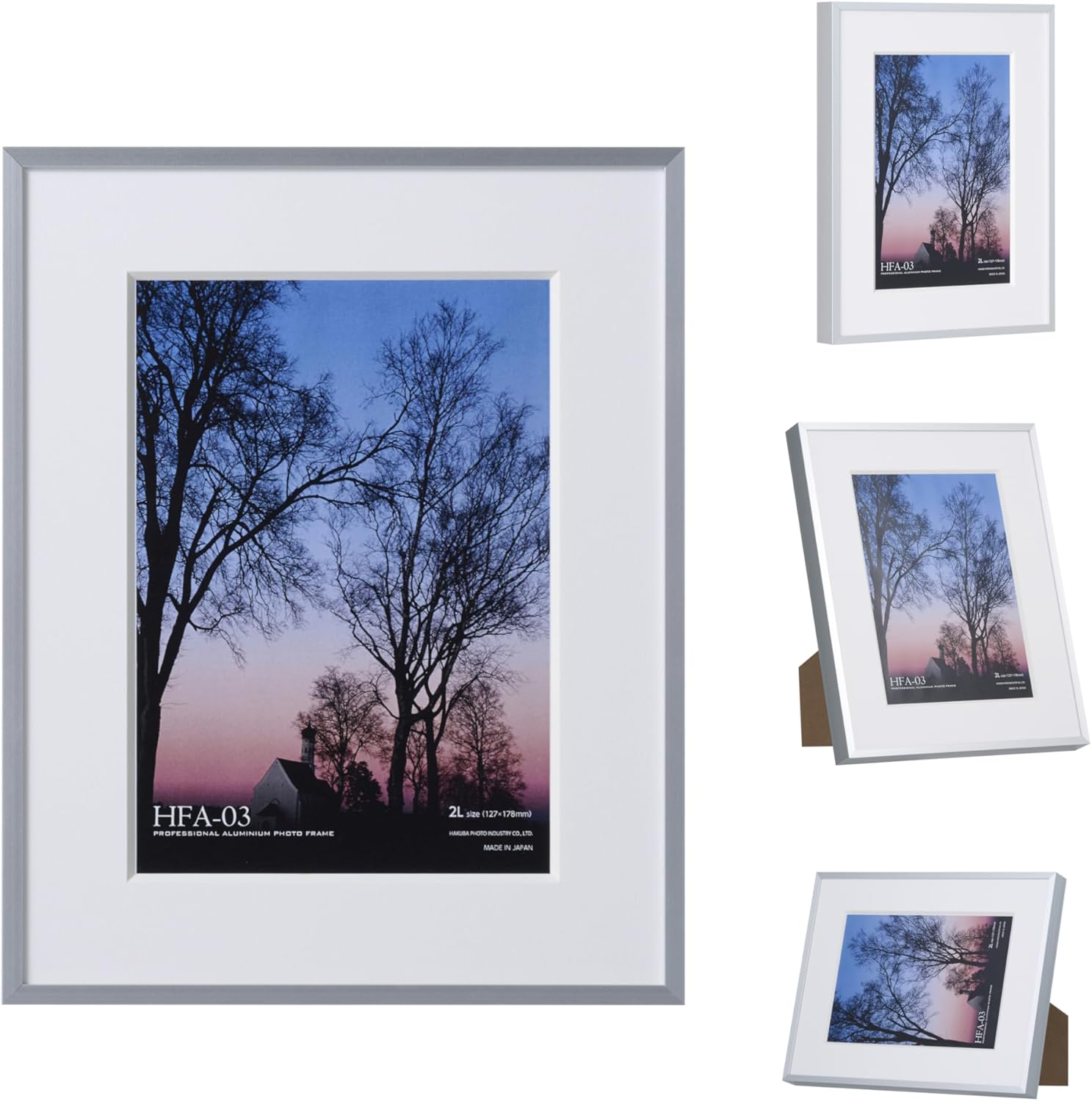 Wide mat type Japanese aluminum frame suitable for trade shows etc. The narrow frame and wide mat make your work stand out, making this an aluminum frame suitable for trade shows. The depth of the frame is made in high quality Japan. The V-cut mat gives depth to the forehead and makes your work stand out. Using the included hanging string and a hanging bracket on the back, you can hang it either vertically or horizontally. The front plate uses a lightweight, high-transparency acrylic plate that is hard to break. Product Specifications: Frame Material: Aluminum Outer Frame Dimensions: Approx. W16.9 x H20.5 x D0.9 inches (W408 x H52Mat opening dimensions: Approx. W 11.1 x H 15.9 inches (282 x 405 Front Plate: Acrylic Weight: Approx. 2.6 lbs (1,300 g). Stand: No Hanging String: Yes.