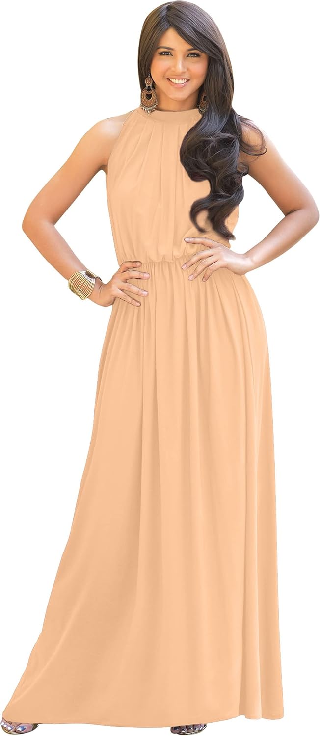 A simple yet stunning sleeveless maxi dress design from Koh Koh that features. This versatile gown is perfect for every occasion so dress it up or down to suit your mood. The elastic waist band is very accommodating and the dress makes the perfect maternity maxi dress for expectant mothers. A real hit for wedding party dresses, the perfect bridesmaid dress or even mother of the bride dresses or mother of the groom dresses.Details about the model in the picturesHeight: 5 foot, 9 inches (175cm)Bust: 32 inchesWaist: 26 inchesHip: 38 inchesWearing Size: SmallPlease select your size based on the bust/chest measurements provided belowBust/Chest: (XS) Up to 32.5 inches (S) 32.5-35 inches (M) 35.5-37.5 inches (L) 38-40 inches (XL) 40.5-43 inches (2X) 43.5-47 inches (3X) 48-51.5 inches (4X) 52-55.5 inchesItem Length: The total length is approximately 54-57.5 inches / 137-146 cmGarment Care: Machine WashableSKU: NT012 KOH KOH Clothing - Your Online Women's Clothing Store since 2008