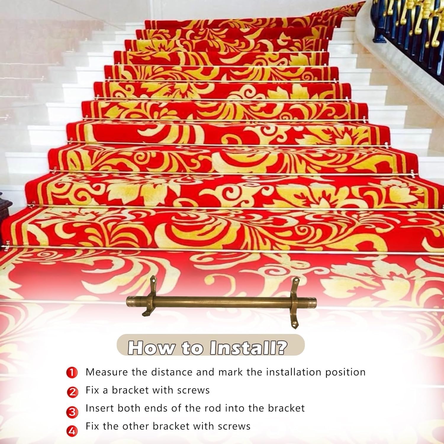 Stair Carpet Runner Tension Rods:Looking for a stylish solution to secure your carpeted stairs? Our premium stair rods are designed to enhance both the safety and appearance of your staircase. Crafted from solid brass, these rods combine elegance with durability, making them an ideal addition to any home decor. Installation is a breeze with our user-friendly design. Simply attach the rods to your stairs and enjoy an instant upgrade to your interior aesthetics. Plus, when it’s time to clean or replace your carpet, the easy-to-remove screws at both ends allow for hassle-free maintenance. **Specifications:** - **Material:** Solid Brass - **Length Options:** 50cm (19.7in), 60cm (23.6in), 70cm (28in), 80cm (31.5in), 90cm (35.4in), 100cm (39.4in) - **Diameter:** 16mm (5/8in) - **Includes:** All necessary mounting accessories - **Compatibility:** Suitable for wood, porcelain, and various stair types - **Ideal for:** Living rooms, exhibition centers, meeting rooms, and more **Key Benefits:** - Made from rust-resistant solid brass that maintains its beauty over time - Quick disassembly for effortless cleaning and maintenance - Supplied with mounting screws for straightforward installation - Customizable length; easily cut to fit your specific needs - Enhances safety by preventing slips and falls, ensuring peace of mind for you and your family - A timeless design that adds a touch of sophistication to any space **Package Includes:** - Stair Carpet Rod - Mounting Screws **Tip:** For optimal fitting, we recommend that stair rods be at least 1.5 inches longer than the runner width, allowing for a 0.25-inch space on each side. Transform your staircase into a stunning focal point while ensuring safety and style with our exceptional stair rods!