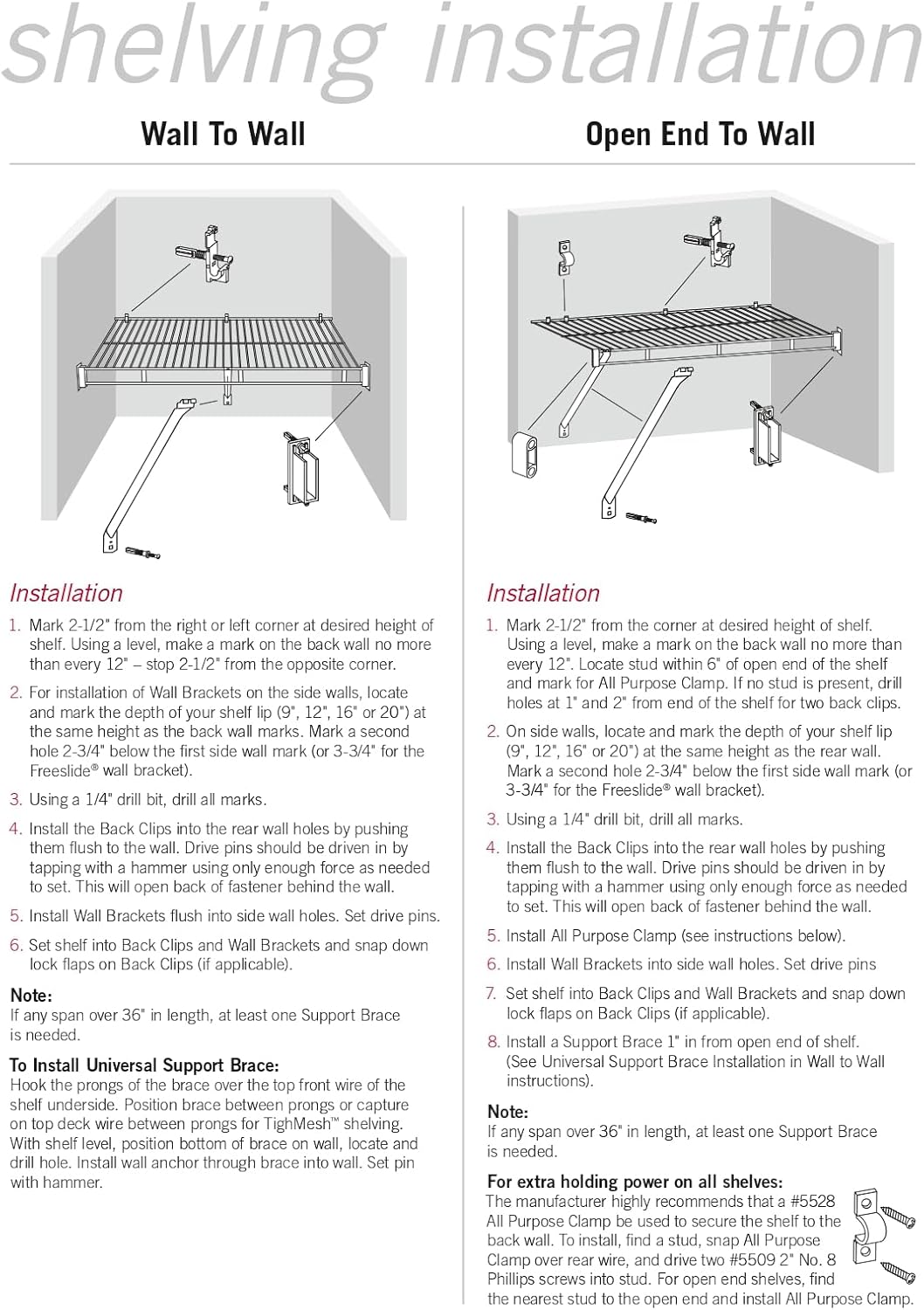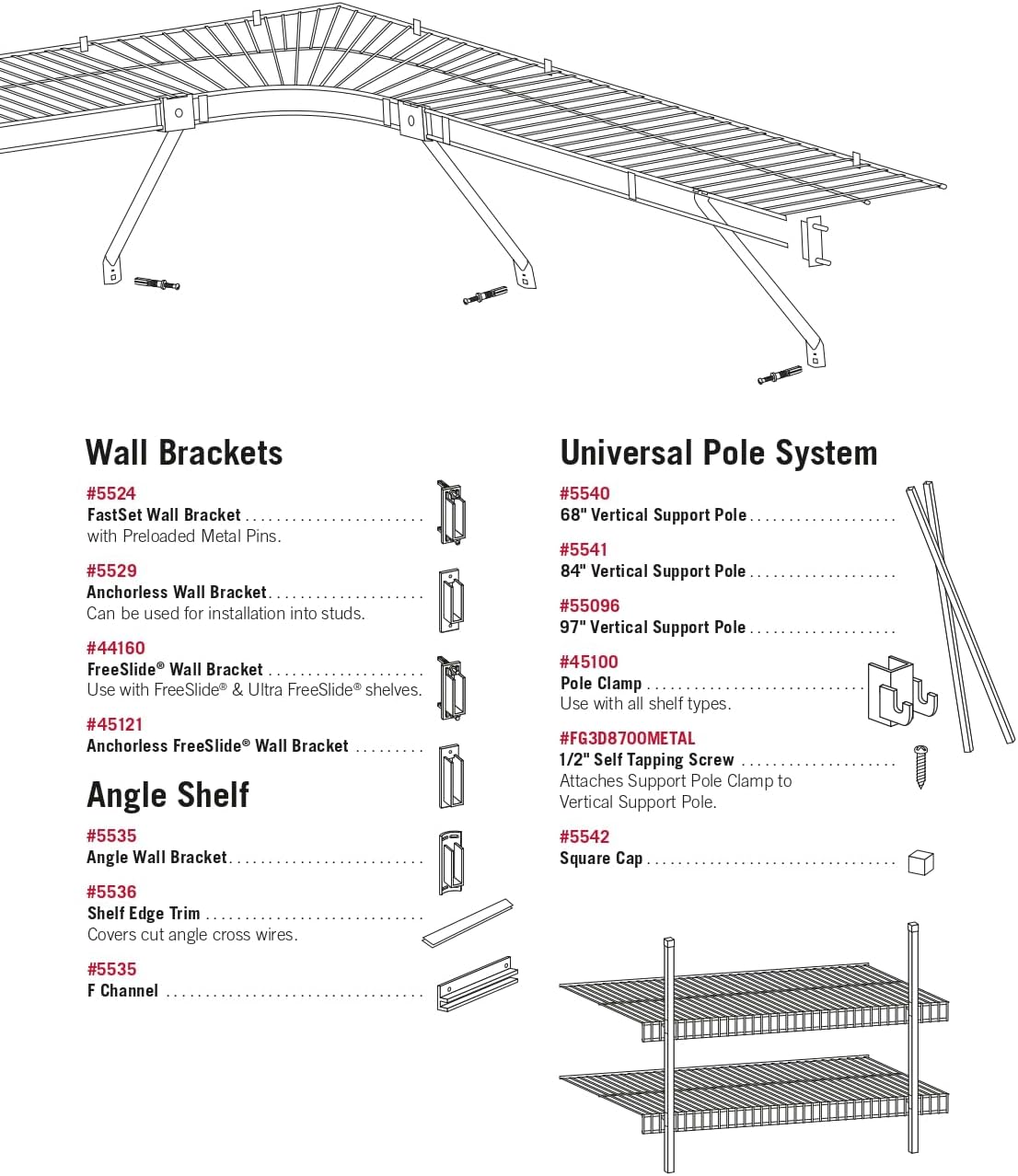 Innovative design of FreeSlide shelving allows hangers to glide from wall-to-wall without interruptions. Epoxy coated steel frame is strong and lightweight. Durable, maintenance-free epoxy finish won't snag, rust, or yellow with age. Ventilated design promotes air circulation to keep items fresh. Perfect for laundry rooms, linen closets or basements. Installs quickly and easily with the included mounting hardware. No cutting necessary. Installs quickly and easily with the included mounting hardware. No cutting necessary. Made in the USA. Rubbermaid FreeSlide Wire Shelving, White, 16-inch Corner (FG3G4000WHT).