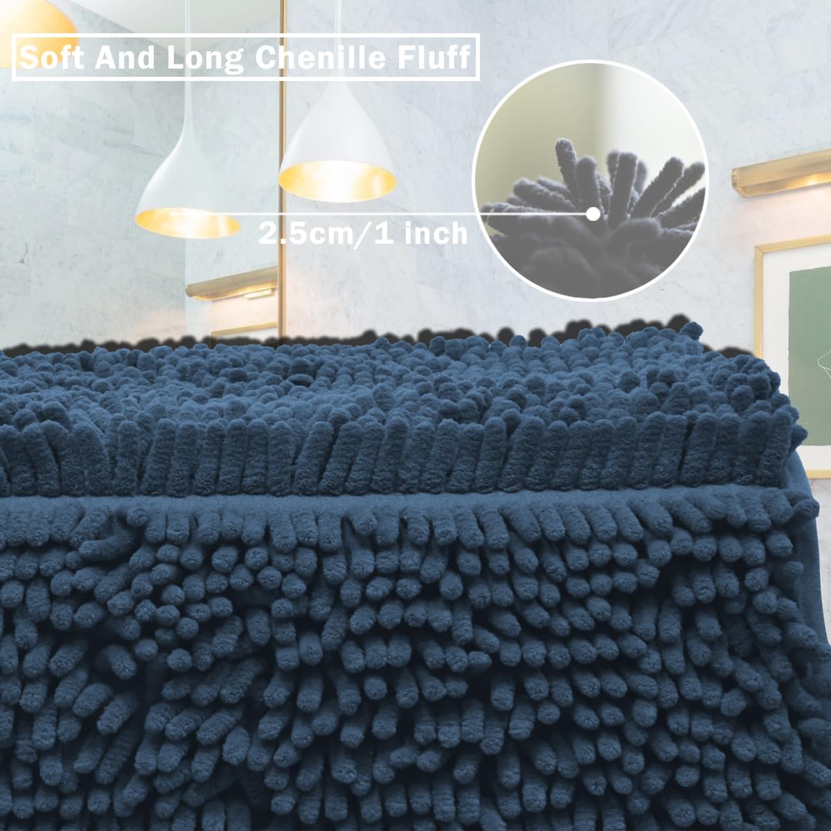 Package Included: 1 * 16''x24'' (40x60cm) rectangular bathroom rug 1 * 20''x32'' (50x80cm) rectangular bathroom rug 1 * 20''x20'' (50x50cm) U-shaped bathroom rug 1 * Toilet Lid Cover (Suitable for Toilet Lid: Length 17" - 19", Wide 15" - 18") 1 * manual Specification: Weight: 1.25kg (2.8lbs) Upper material: chenille Middle material: Resilient sponge Bottom material: non-slip PVC Why Should You Choose Us? Made of 1-inch extra-long chenille plush and high-strength sponge, our bathroom rugs will provide you with a very comfortable use experience. Equipped with high-quality PVC non-slip material on the back. There is no need to worry about our bath mats sliding on the floor. Safe and comfortable. The high-strength sponge not only provides comfortable foot support but also has super water absorption capacity. Spilled water will be quickly absorbed by the bath rugs. Suitable for multiple scenarios: The 20''x32'' rectangular bathroom rug is ideal for tubs or larger spaces. The 16''x24'' rectangular rug works well for basins or smaller spaces. The U-shaped rug is designed for toilets. The toilet lid cover can be placed on the toilet seat conveniently.