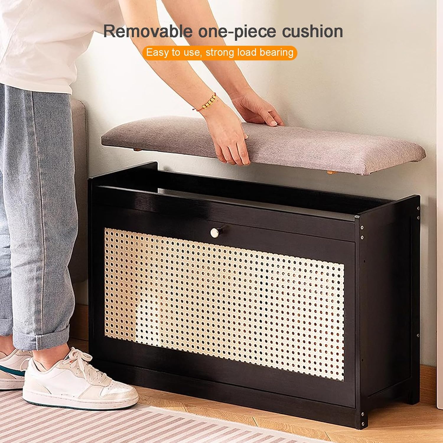 Transform your entryway or bedroom with our versatile Shoe Bench, designed to blend functionality and style seamlessly. No more hopping around on one leg to put on your shoes; this thoughtfully crafted bench offers a comfortable padded seat, making your daily routine smoother and more enjoyable. **Sturdy and Reliable Design:** Crafted with a solid wood frame, this shoe bench provides exceptional stability and durability. It’s not just a seat; it’s a reliable storage solution that can hold your purses and handbags while neatly nizing your most frequently worn shoes. **Enhanced Comfort:** The high-density foam cushion ensures maximum comfort, allowing you to sit down comfortably while putting on your shoes or simply enjoying a moment of rest. **Ample Shoe Storage:** With spacious shelves, this shoe bench accommodates multiple pairs of shoes, making it ideal for daily storage demands. nize your footwear efficiently and keep your living space tidy. **Protective Foot Pads:** Equipped with foot pads, this bench prevents slipping and protects your floors from scratches, ensuring it remains a staple in your home for years to come. **Versatile Use:** Perfect for various settings, this multifunctional storage shelf fits beautifully in hallways, entryways, living rooms, bedrooms, or even bathrooms. It enhances your space while providing practical storage solutions. **Specifins:** - Colors: Brown, Wood Color, Black - Material: Solid Wood Frame, Soft Cotton Linen Fabric, High-Resilience Sponge - Product Size: Available in 20”L x 10”W x 18”H or 28”L x 10”W x 18”H Elevate your home nization with our Shoe Bench – where comfort meets practicality. Ideal for anyone looking to streamline their daily routine while adding a touch of elegance to their space.