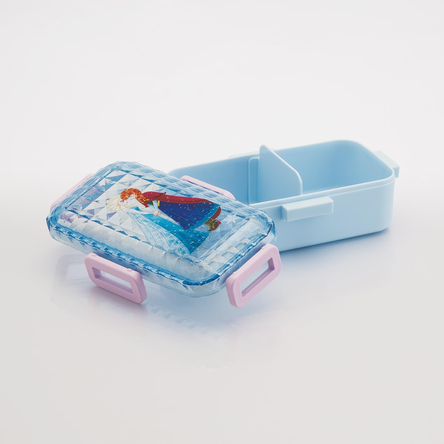 This lunch box features a beautiful diamond cut pattern. A lunch box with a dome-shaped lid that can be served easily. The 4-piece lock prevents juices from leaking and has a high divider that prevents side dishes from separating. Slim type that can be held with one hand. Microwave safe with the lid removed. Dishwasher safe for easy care.