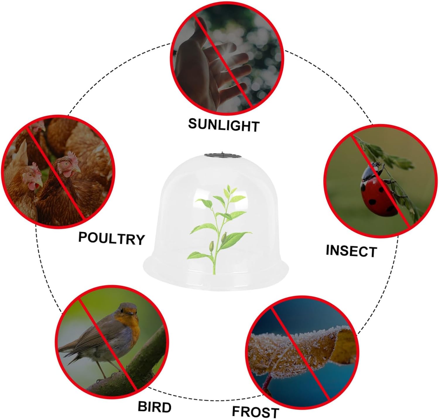 Package List 6 x protective covers 18 x fixed pin 10 x plant labels Characteristics - Color: As shown Flower Protective Cover. - Material: PET, plastic, metal Plant Anti-freeze Cover. - Size: About 26.00X26.00X21.00cm/10.22X10.22X8.25inch Mini Cover for Plant. - Waterproof and snow-proof, as far as possible to help plants and flowers grow healthily Garden Cloche. - This greenhouse cover creates conditions for the growth of plants and flowers, and helps to extend of plants Garden Nursery Cover. - Made from and material, can be used for a long time Garden Accessory. - This is an excellent shelter for plants. Portable and easy to carry Reusable Plant Dome. - It is suitable for plant cultivation places such as terraces, lawns, gardens, backyards, courtyards, parks and so on Plastic Plant Cover.Goods InformationGarden Nursery Cover Are you looking for professional tools to protect plants? Why not take a look at this plant nursery cover.Flower Protective Cover Not only that, it is also windproof, and rainproof.Winter Plant Protector It can prevent plants from being damaged by frost or snow