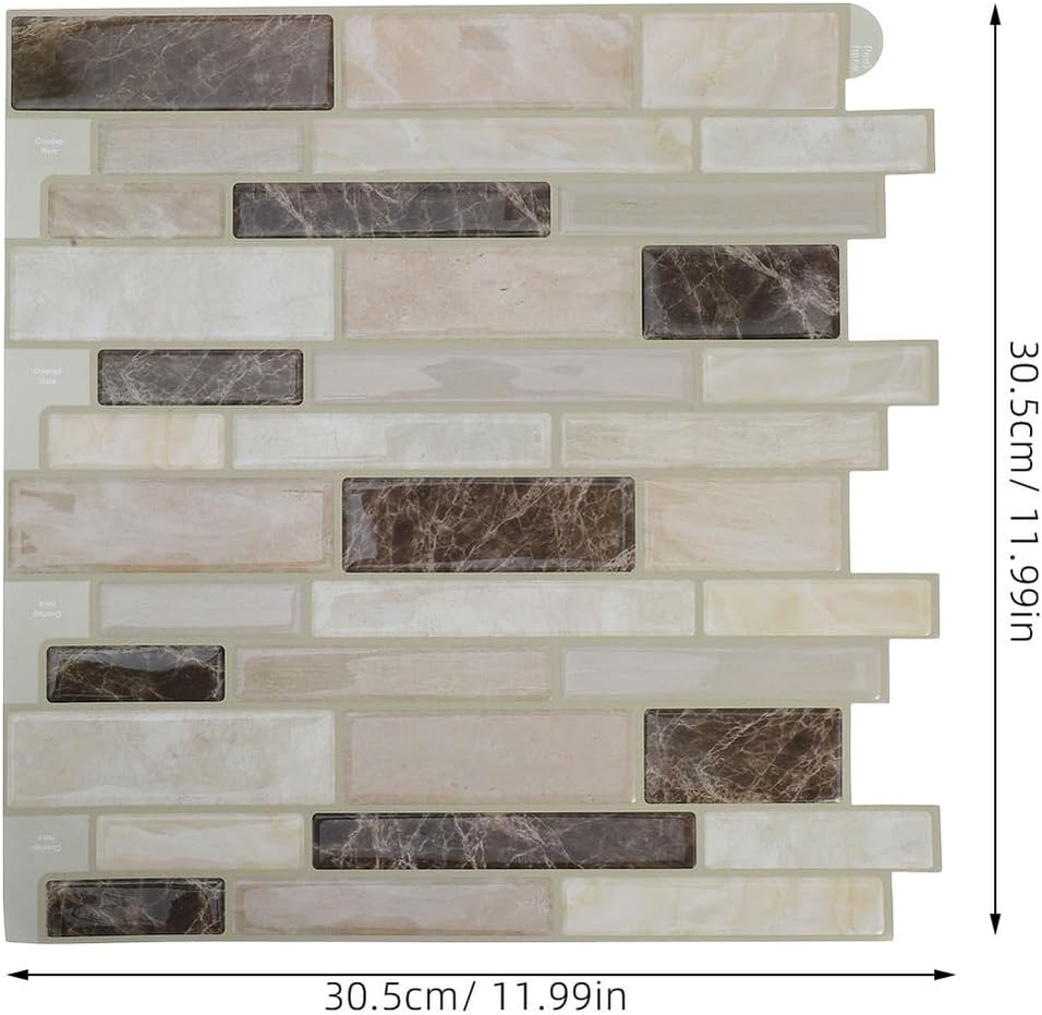 Package List 10 x wall stickers Characteristics -Product Info: Marble Waterproof Wall Stickers -Protective material: made from waterproof and oilproof materials, these tile stickers resist daily stains, keeping your walls clean and reducing the need for frequent cleaning - and scratchresistant: these pvc wall panels are designed to be and resistant to scratching, maintaining their vibrant appearance even in hightraffic areas like kitchens and bathrooms DIY tile decals -Versatile surface application: these stickers adhere well to various surfaces, including tiles, wood, and smooth walls, allowing a seamless and polished look throughout your space bathroom tile transfers sticker -Sophisticated marble texture: enhance the beauty of your kitchen and bathroom with these backsplashes for kitchen wall that offer a realistic marble texture, providing a stylish and elegant update kitchen oil-proof sticker -Material:PVC -Userfriendly installation: the pvc selfadhesive design allows for easy DIY installation, eliminating the need for professional tools and enabling quick decor changes faux tile wall stickers -Color:Multi -Size:30.50X30.50X0.10cm/11.99X11.99X0.04inGoods Descriptionkitchen tile stickers They can be cut to fit any size or shape, making them versatile for various applications.peel and stick backsplash Whether you're covering an entire wall or creating a unique backsplash, these stickers provide a flexible and stylish solution to meet your home decor needs.marble tile stickers Perfect for DIY enthusiasts, these tile stickers allow you to DIY your living space with ease