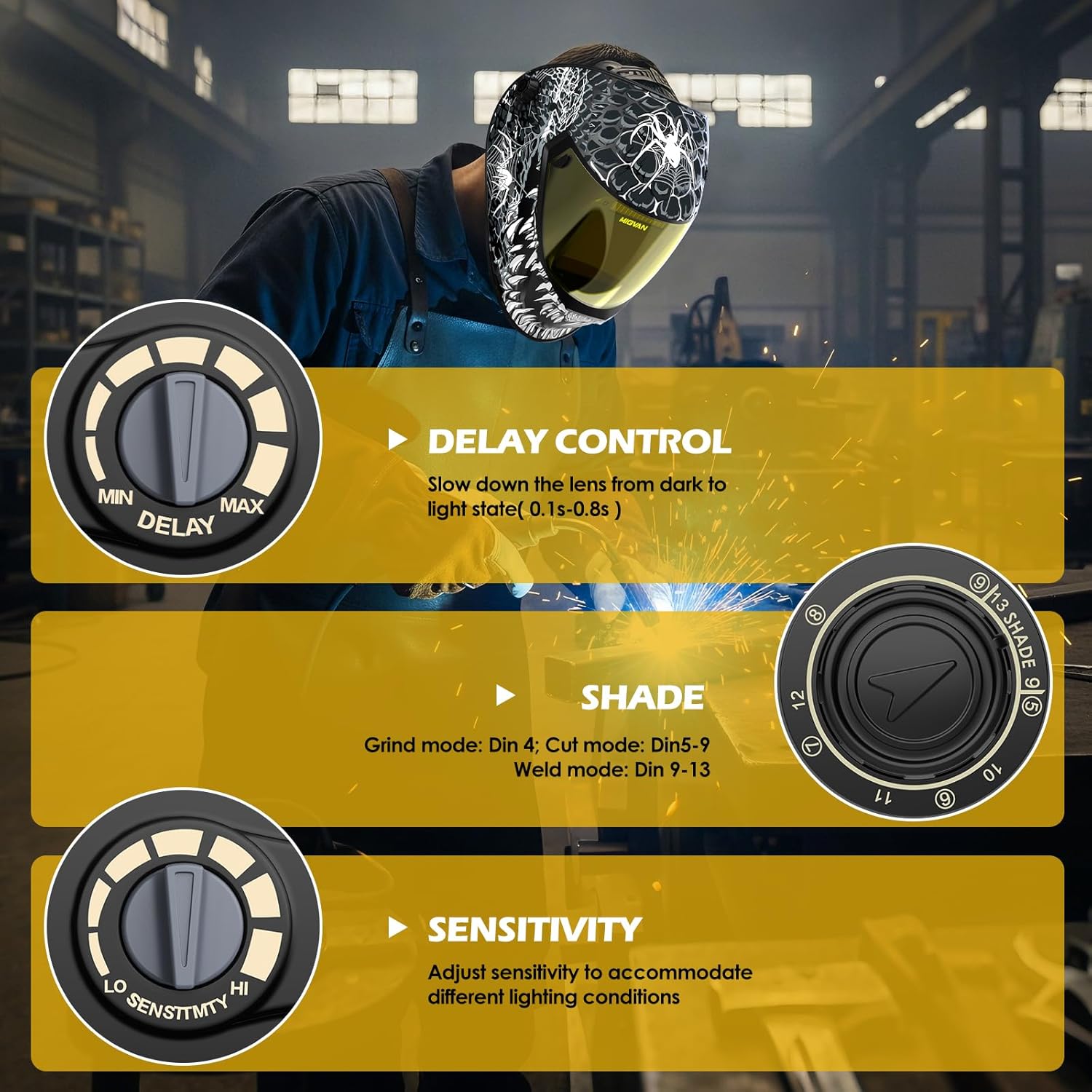 | Included Components | 1 X H-22 Welding Helmet, 1 X Storage Bag, 1 X User's Manual, 2 X Inner Protective Lens, 2 X Outer Protective Lens |