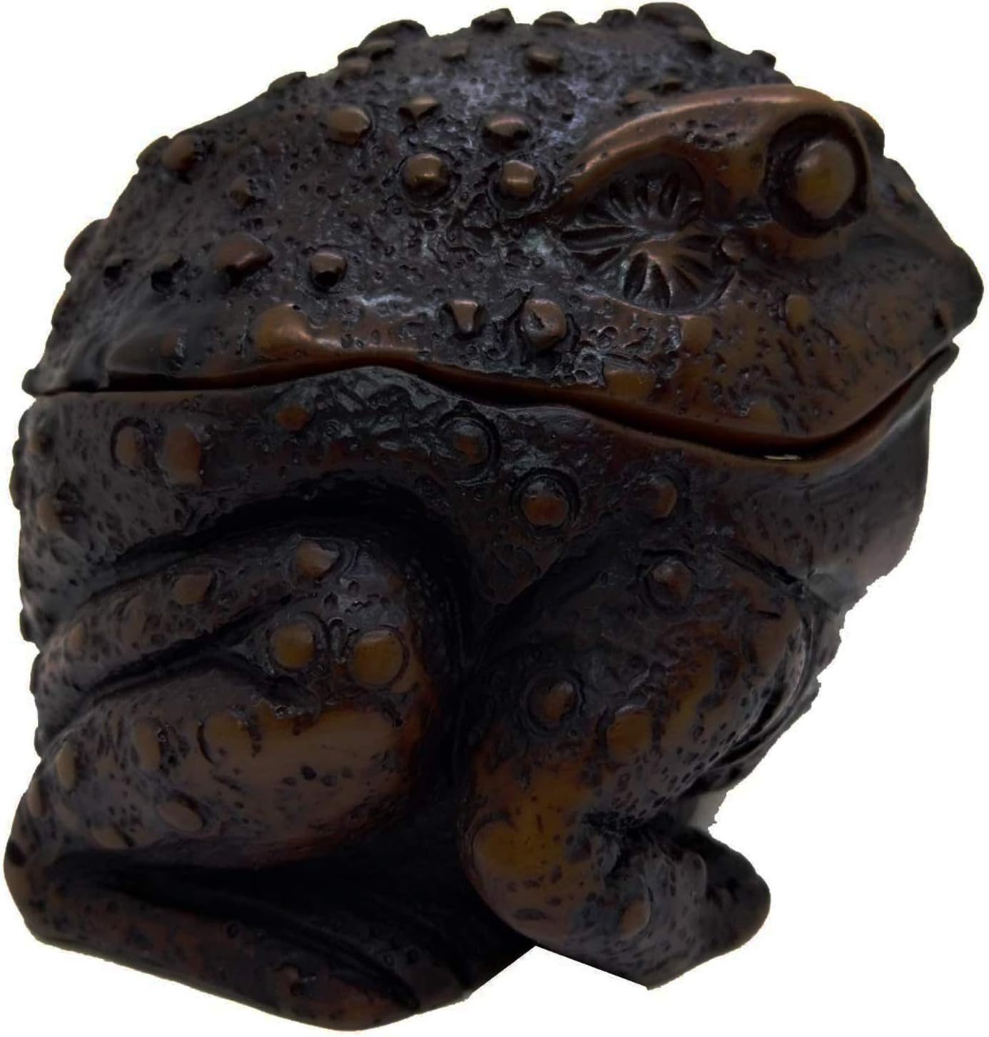 WitnyStore Tiny 4" High Brown Sitting Toad Ashtray With Lid - Miniature Hand Made Painted Resin Frog Amphibian Animals Decorative Figurines Ashtrays Cigarette Holder Home Décor Accents Souvenirs Gifts