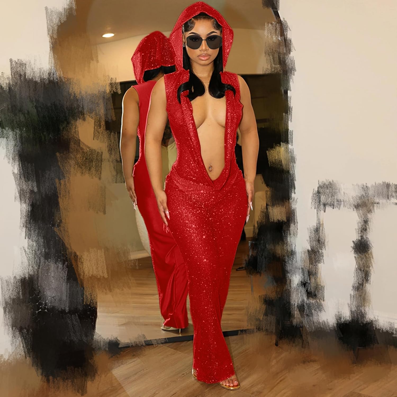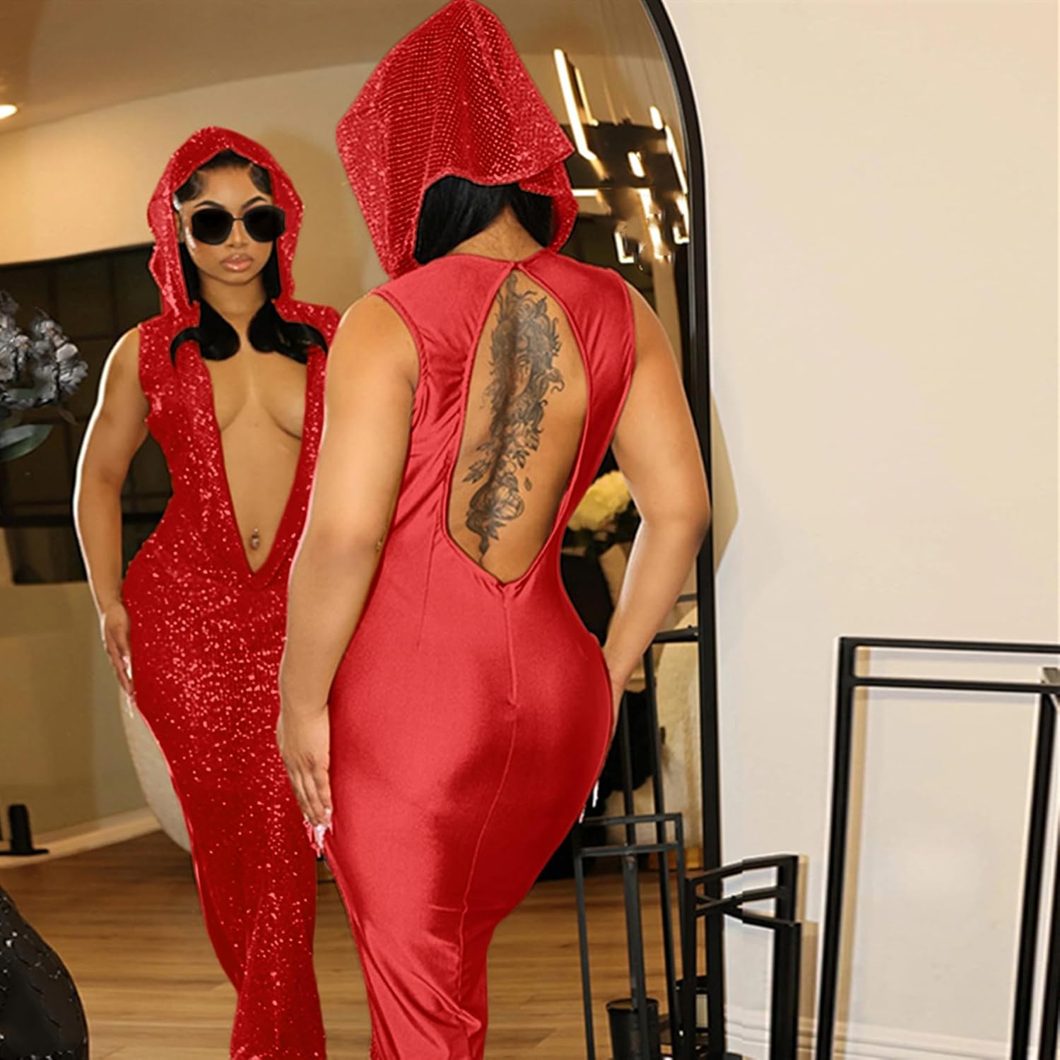 Size Chart:Size--------------Bust-------------Waist----------------Hips----------------LengthS-----------25.1-33.86in------24.40-31.49in-----31.49-37.79in---------57.87inM---------26.77-35.43in------25.98-33.07in-----33.07-39.37in--------58.85inL----------28.34-37.01in------27.56-34.64in------34.64-40.94in--------59.84inSpecification:-Color: Black/Beige-Size: S to L-Material: Polyester-Target: Women,girlsFeatures:-The long dress is suitable for slim women or girls, slight stretch. You need to measure according to the size chart we provide before purchase.There is a slight error in the size measurement. Please refer to the size chart on “Product Description” before purchasing.-The night dress is very shiny and beautiful, but the dress has slight stretchy. Perfect for women , ladies,girls.-The club mini dress is suitable for party, rave festival club, swimming party, music club, show, holiday, night out, work, sleeping wear, seaside or other place.Notes:- Please allow slight dimension difference due to different manual measurement.-The color maybe a little difference compare the image with actual item due to monitor reflect.