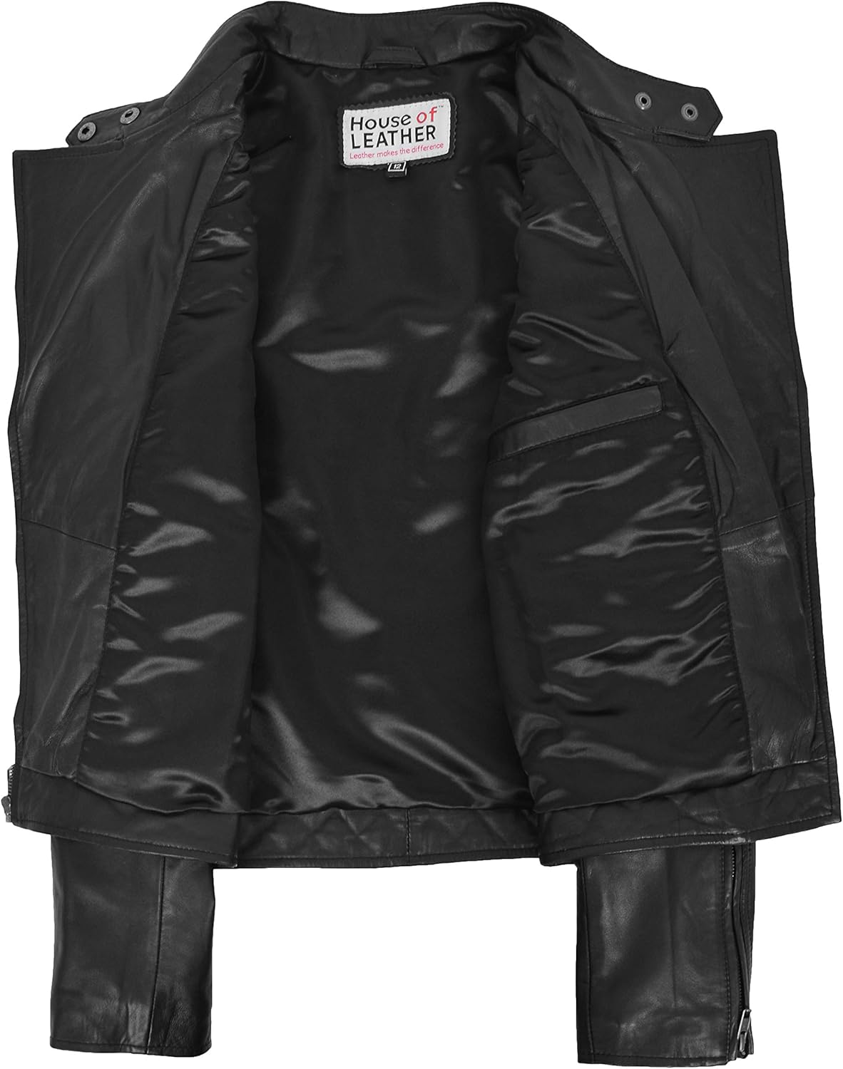 A classic cross zip fastening jacket with a stand-up collar. Made from butter-soft nappa leather. It features a front zip fastening, two outer zip pockets, buckled neckline and a quilt features which goes from the front along the back.