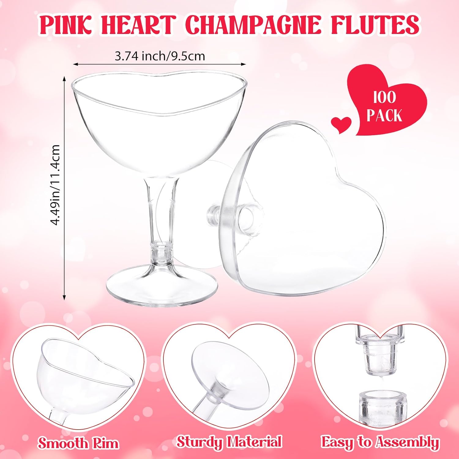 Features: Make every celebration extra special with these heart-shaped Couple glasses. Designed with a romantic heart silhouette, these 5-oz PP cocktail cups instantly elevate weddings, bridal showers, Valentine's Day celebrations, and birthday parties. The practical detachable base design ensures easy assembly and compact storage—ideal for event hosts and decorators. Crafted from durable PP material, the glasses are sturdy, lightweight, and safe for any indoor or outdoor setting. Whether you're serving champagne, cocktails, desserts, or party snacks, these heart-shaped cups bring a touch of elegance and sweetness to any occasion. A perfect blend of beauty, functionality, and value, making your event unforgettable. Specifications: Material: PP Color: transparent Size: about 3.74 inches (9.5 cm) in diameter, with an overall height of 4.49 inches (11.4 cm) Package includes: 100 Pcs cups Notes: Manual measurement, please allow slight errors on size. The color may exist a slight difference due to different screen displays